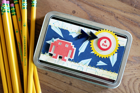Here is a simple back to school gift idea for teachers–a reusable metal tin filled with flavored tea bags customized and decorated using some fabulous Crate Paper products!