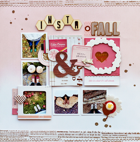 This insta-Fall layout by Adrienne Alvis takes on the subject of changing seasons & truly unique selfies - lots of pretty pink included!